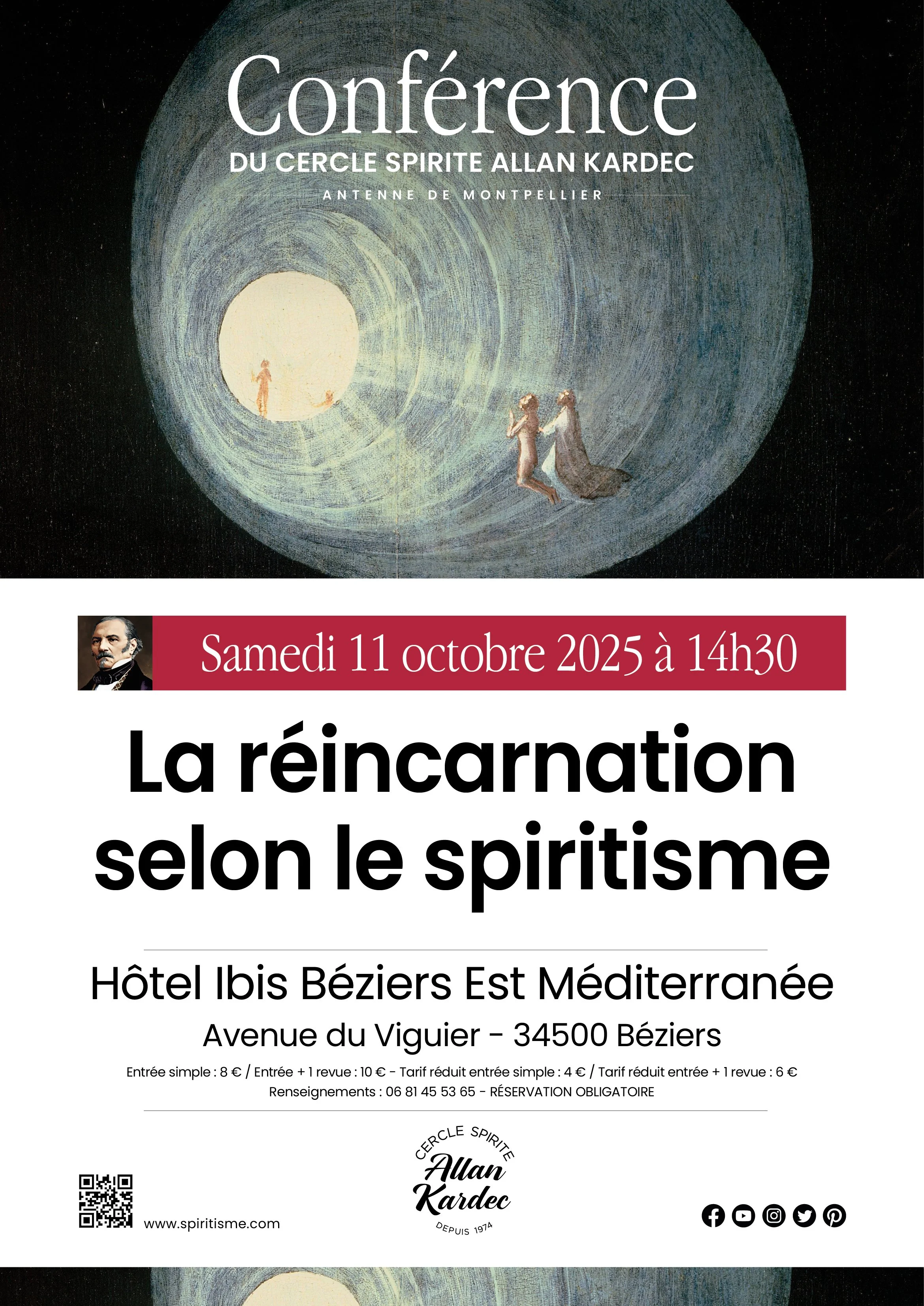Loin de la notion punitive du karma et de l’idée de métempsycose (doctrine selon laquelle une même âme peut animer successivement plusieurs corps - humains ou animaux), la Réincarnation met en évidence l’existence de l’Esprit, appelé à renaître dans un but d’évolution intellectuelle et morale. Débarrassée de son état de croyance ancestrale par la philosophie spirite, la Réincarnation est une loi naturelle constatée sous hypnose régressive et par le biais de nombreuses preuves issues de la communication avec les Esprits. Dotée de réponses quant au sens à donner à sa vie, la Réincarnation demeure un gage d'espoir et d'évolution pour nos sociétés modernes.