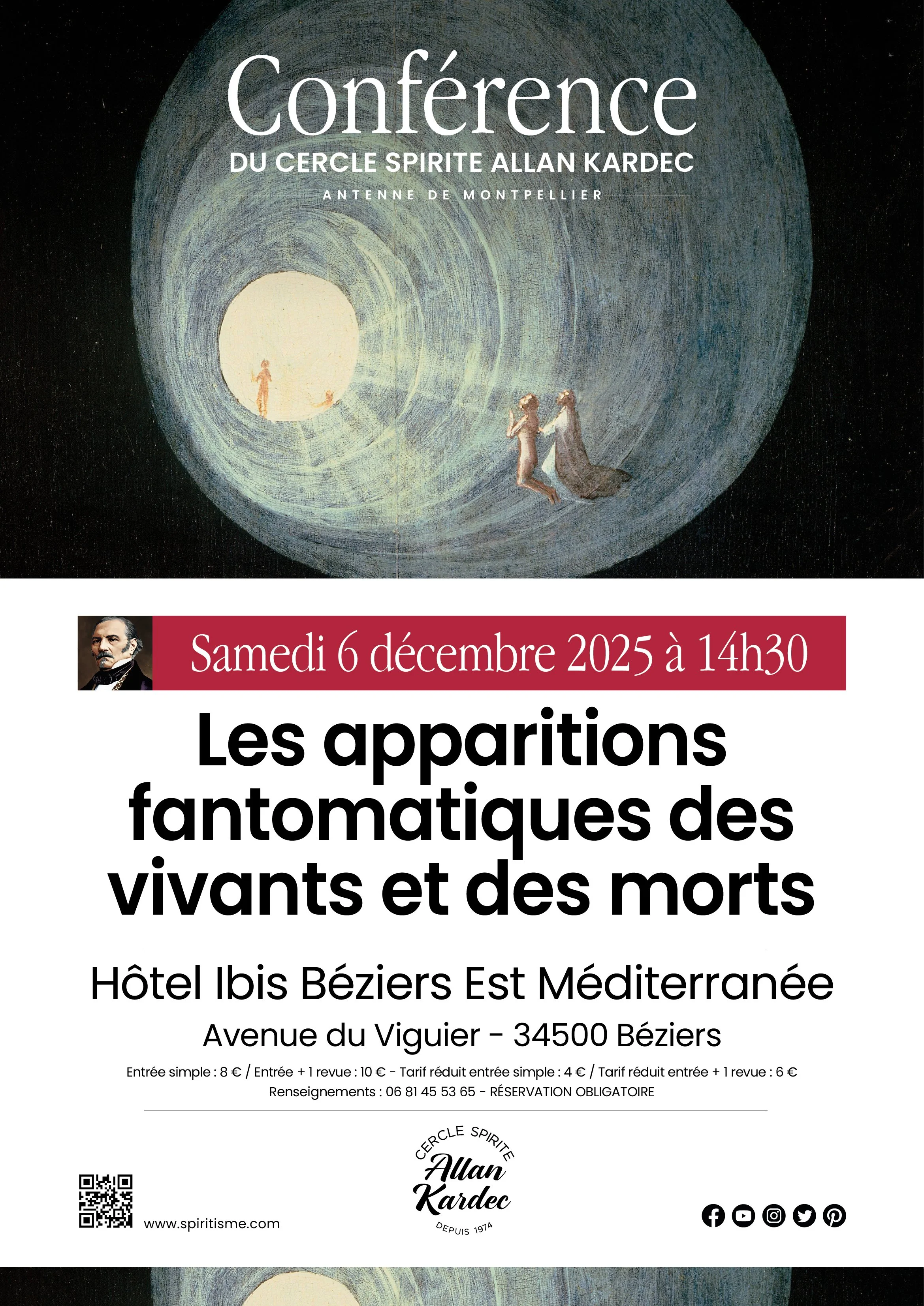 Nous traiterons des apparitions fantomatiques en prenant appui sur différents témoignages, répertoriés dans des ouvrages spirites, et selon les expériences vécues dans notre association.